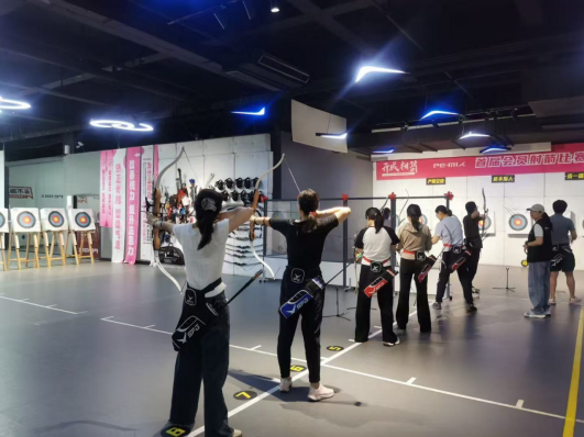 射箭場上,隊(duì)員們屏息凝神,拉弓搭箭,以沉穩(wěn)的姿態(tài)瞄準(zhǔn)靶心,在瞄準(zhǔn)與釋放中體會傳統(tǒng)運(yùn)動的魅力?;顒又校蠹一ハ嘀笇?dǎo)動作要領(lǐng),分享發(fā)力技巧,在協(xié)作中感悟“進(jìn)步”的深刻內(nèi)涵。