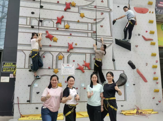 攀巖環(huán)節(jié)將活動推向高潮。在專業(yè)教練指導(dǎo)下,團(tuán)員們穿戴護(hù)具,依次挑戰(zhàn)8米高的巖壁。面對陡峭的賽道,隊(duì)員們以“敢為人先”的勇氣迎難而上,指尖緊扣巖點(diǎn),腳步穩(wěn)扎穩(wěn)打,用汗水詮釋“奮斗是青春最亮麗的底色”。許多人從最初的緊張到逐漸突破自我,最終登頂時全場歡呼。“巖壁上的每一步都需要專注和勇氣,就像工作中攻克難關(guān)一樣,當(dāng)代青年亦需在挑戰(zhàn)中突破自我!”大家感慨道。