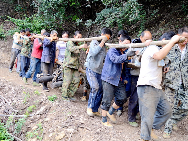 去年10月底接到任務后,隊工程公司立即組織精干力量,全力做好開鉆前的各項準備工作。經(jīng)理沈星馬不停蹄趕赴有關生產(chǎn)單位進行設備考察、采購,確保了所需施工設備按時進場。副經(jīng)理徐傳峰坐鎮(zhèn)工地指揮,緊鑼密鼓地完成了道路、機臺的修筑以及電路、供水系統(tǒng)的布設等工作。由于鉆孔處于善車峪的山溝內(nèi),路況差,又是軍事禁區(qū),運送機械設備的大車進不去,必須在山外拆卸后用小貨車送到溝內(nèi),再用人工搬運上山。工程公司606機臺全體員工加班加點,肩扛手抬,及時把40余噸設備材料運到了機臺。