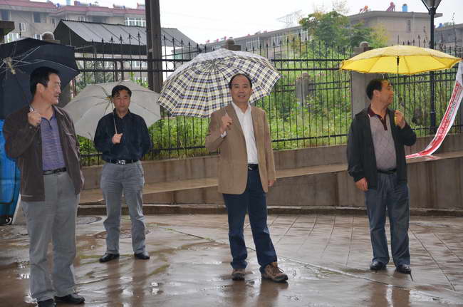 圖為隊(duì)領(lǐng)導(dǎo)冒雨陪同工程驗(yàn)收