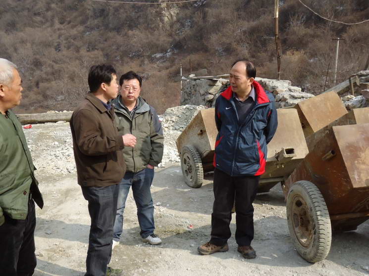 隊(duì)長(zhǎng)檢查坑口負(fù)責(zé)人駐地基建情況