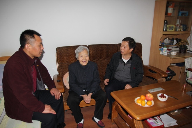 “今天您過節(jié)了,我們來看看您,也祝福您,希望您健康長壽?!标狘h委書記王戰(zhàn)社一進(jìn)門就親切地握著劉明簡老人家的手說,并送上慰問品。老人高興地連聲說“謝謝”。在與老人及其親屬親切交談中,了解到老人身體健康,而且還經(jīng)常做家務(wù)、晨煉運(yùn)動時,連連稱贊老人身體好,有福氣,說:“家庭和睦、兒孫孝順、心胸開闊,是老人健康長壽的重要原因?!?/span>