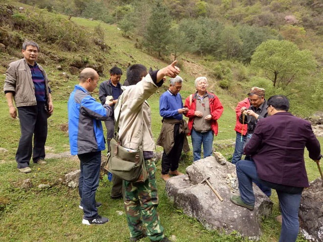 在驗收期間,專家組在詳細聽取了項目負責趙西鋒關于項目野外工作情況匯報后,重點對發(fā)現(xiàn)的金礦化點和兩條晶質石墨、金紅石、矽線石礦帶進行了實地檢查驗收。