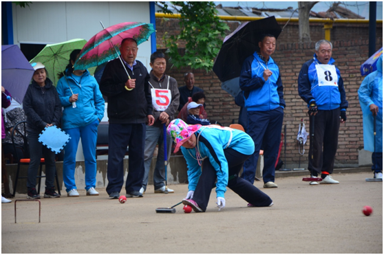 門球場上,隊(duì)員們個個精神煥發(fā),手握重槌,氣定神閑,揮桿對壘沉著冷靜,彎腰擊球也顯得身手矯健,擊球力度和角度都控制得非常精準(zhǔn),毫不遜色于年輕人。“過門”、“撞擊”、“閃擊”,充分展現(xiàn)了“壯心未與年俱老”的“夕陽紅”活力。