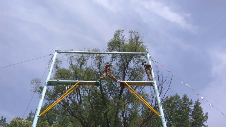 圖為隊(duì)員挑戰(zhàn)“高空斷橋”掠影
