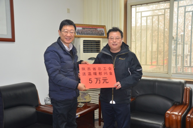 春節(jié)將至,暖意濃濃。各級(jí)領(lǐng)導(dǎo)心系困難職工。1月24日下午,陜西省總工會(huì)黨組成員、副主席張永樂一行5人,深入我公司開展送溫暖活動(dòng)。集團(tuán)公司黨委委員、副總經(jīng)理、工會(huì)主席白林科,工會(huì)常務(wù)副主席張漢軍等陪同慰問。張永樂詳細(xì)了解了公司生產(chǎn)經(jīng)營(yíng)情況與發(fā)展中面臨的困難與問題,以及“春節(jié)”前我公司幫扶服務(wù)工作的開展情況。張永樂副主席充分肯定了我公司的各項(xiàng)工作,代表省總向公司廣大職工致以新春的問候!努力把以習(xí)近平同志為核心的黨中央對(duì)廣大職工群眾的關(guān)心關(guān)懷送到職工群眾的心坎上。座談會(huì)后,張永樂一行先后到因病致困職工王玉霞和西安市勞動(dòng)模范董紅毅家中進(jìn)行了走訪,仔細(xì)了解了他們的生活情況,并送上慰問金和慰問品。