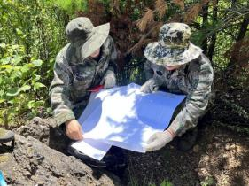 在一周的野外工作中,機關(guān)4名“穿越”人員聽從項目技術(shù)人員的指導(dǎo),配合一線技術(shù)人員開展地質(zhì)工作。平時習(xí)慣了辦公室工作的同志,在上山時雖略顯吃力,但都很努力地追趕項目人員的步伐,堅持與一線技術(shù)人員同進(jìn)退。