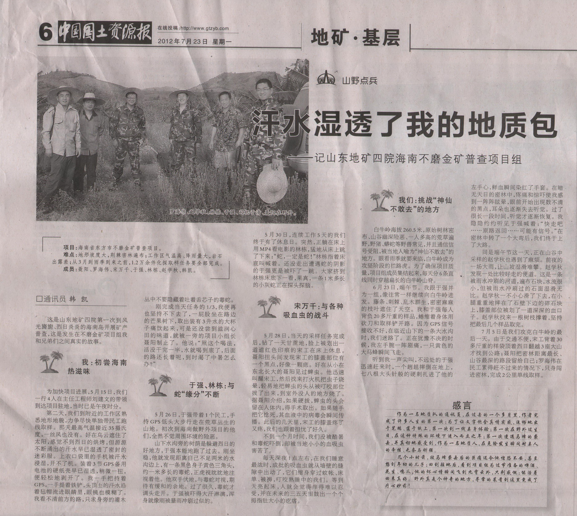 汗水濕透了我的地質(zhì)包